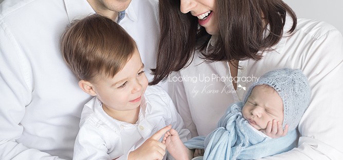 We decided on a palette of blues, whites, and creams, to go with the baby’s fair skin, and Fiona’s lovely red hair. I especially loved getting close-up shots of their precious little faces, highlighting their tiny features. We accented Fiona with a simple, white floral headband, and laid the both of them on a bed of soft, furry fabric. The two of them so close together was a sight to see, and I just know that they’ll grow up to be wonderful friends! Some of my favorite shots were of mom and dad, showcasing the bursting joy and pride that they had as new parents.